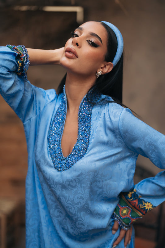 Sold outSEA BLUE SATIN KAFTAN