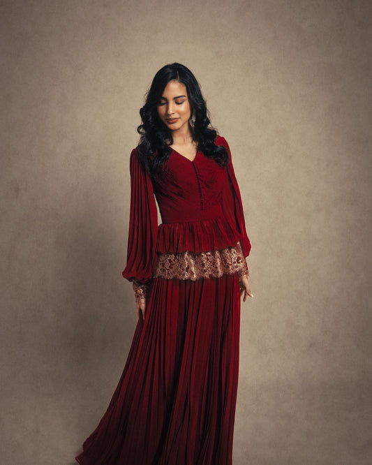 CONTRAST PLEATS V NECKLINE GOWN